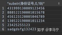 查询的话,必须对应身份证的前18位,因为有些身份证后面会多一些数字,那么用如下语句测试身份证的前18位: