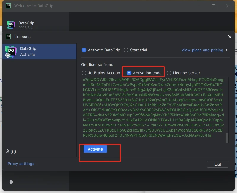 12.打开DataGrip,激活码放在一起的,全选复制粘贴,输入激活码即可