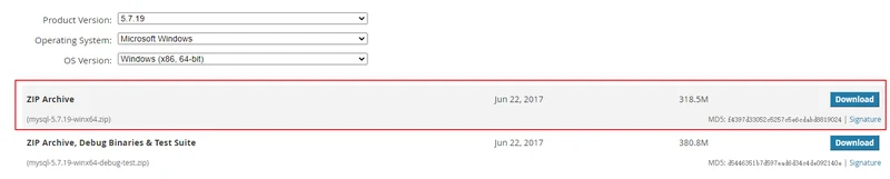 (1)下载MySQL,我下载的是5.7.19版本的