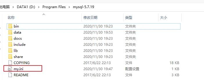 basedir=D:Program Filesmysql-5.7.19 #基础目录