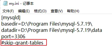 (9)修改my.ini文件用#注释最后一句skip-grant-tables