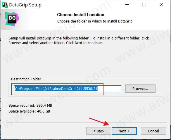 1、从本站下载数据包后解压然后运行安装程序,datagrip-211.5538.21.exe点击next