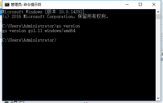 3、在cmd命令行窗口输入“go version”可以查看当前Go版本,用以检测是否安装成功