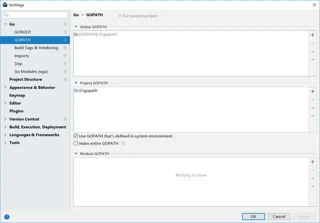 打开Goland的File > Setting,在如下界面中配置好GOROOT和GOPATH