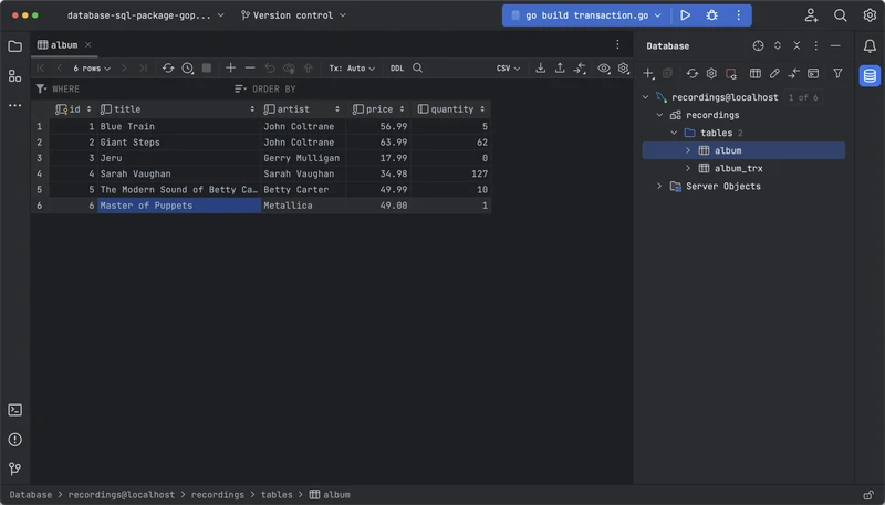 _, err = tx.ExecContext(ctx, "INSERT INTO album (title, artist, price, quantity) VALUES ('Master of Puppets', 'Metallica', '49', '1')")