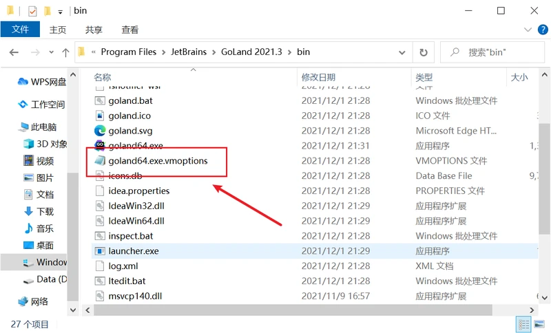 然后按照最开始 GoLand 的安装路径,找到 GoLand 的根目录,再打开 文件夹。