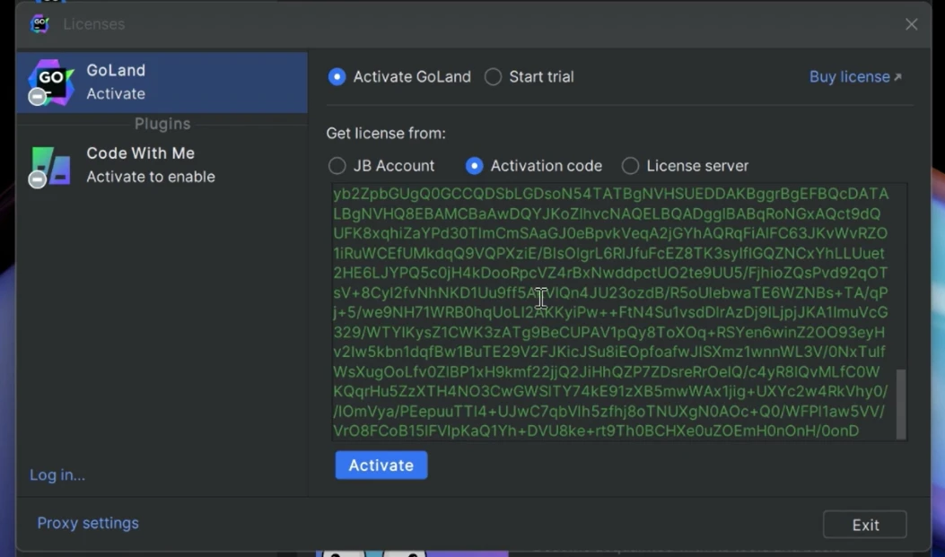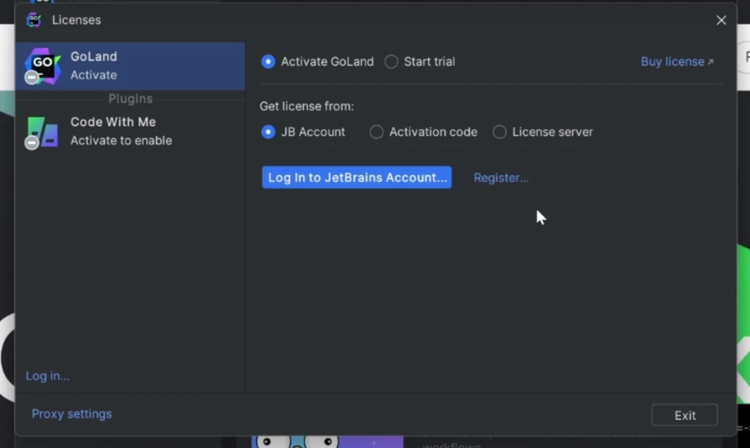 安装完成后,打开 GoLand 会出现这个界面,提示激活。