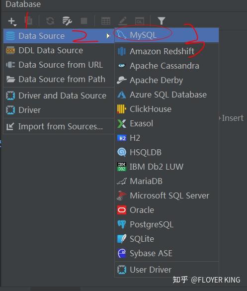 (2).点击后,进入如下界面,选择Data Source->MySQL,鼠标左键点击。