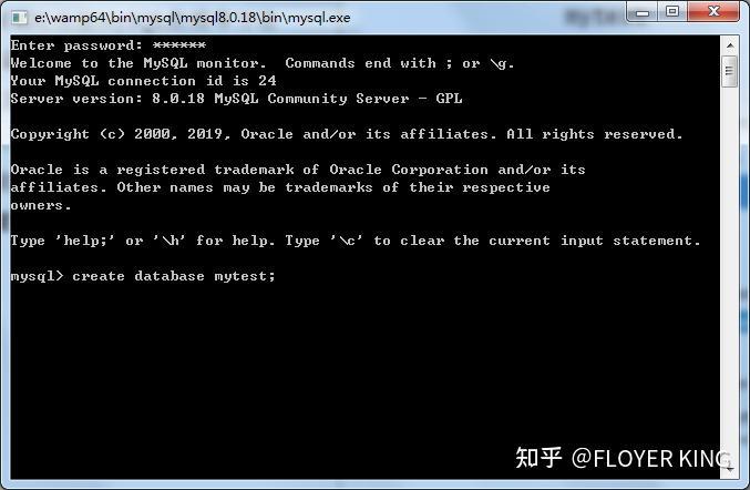 (2)使用wamp中的命令行访问MySQL数据库,并临时创建一个个人数据库