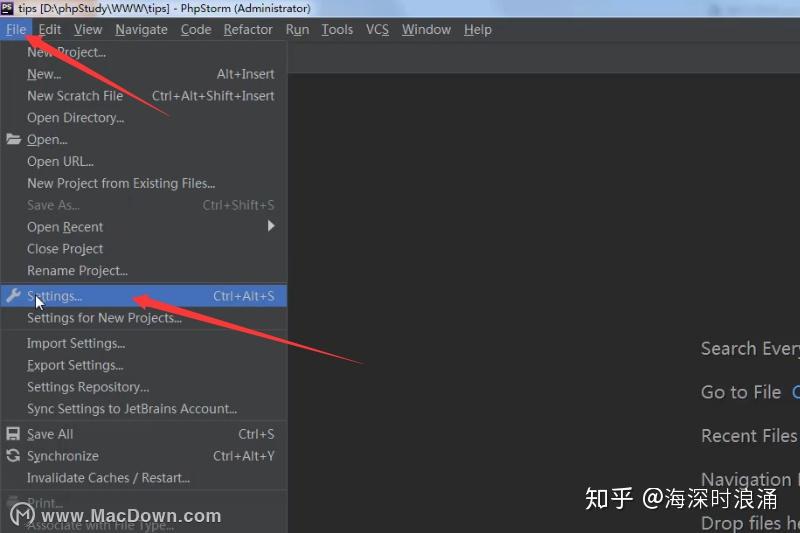 一、设置phpstorm整体界面背景颜色首先打开设置setting选项。