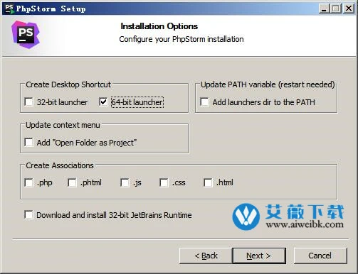 2、点击next选择软件安装目录,默认为“C:Program FilesJetBrainsPhpStorm 2020.1”;