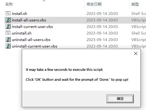 然后再运行install-all-users.vbs,跟上面同理。也是需要等两个框