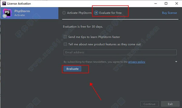 1、在桌面运行打开软件,弹出注册界面,选择evaluate for free,然后点击evaluate试用软件