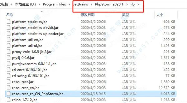 6、最后将resources_zh_CN_PhpStorm.jar汉化补丁复制到软件安装路径lib文件下即可