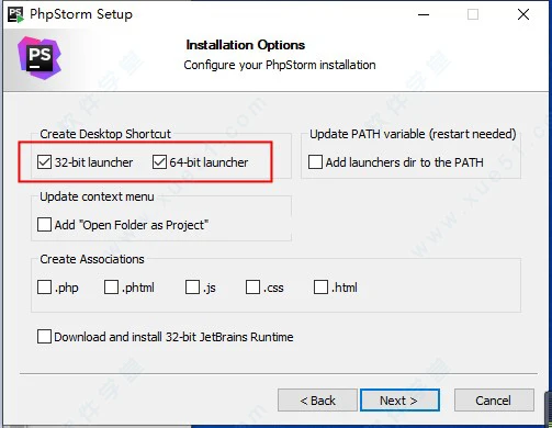 3、根据用户系统位数选择版本进行创建桌面快捷方式,32位和64位建议都勾选