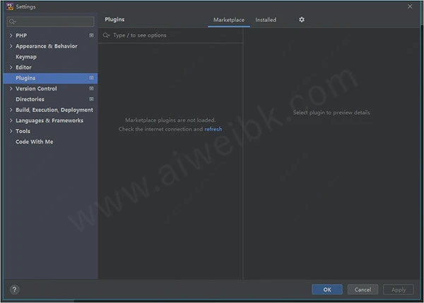 7、首次进入页面为英文,点击“Ctrl+ALT+S”打开“Settings-Plugins”进入设置