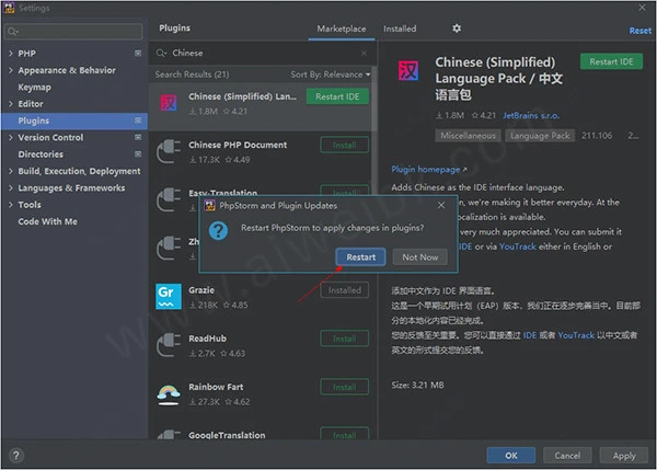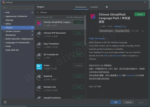 10、完成以上步骤即可获得中文版phpstorm 2021