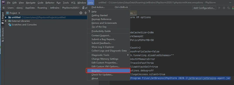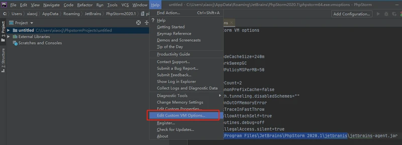 -javaagent:C:Program FilesJetBrainsPhpStorm 2020.1jetbranisjetbrains-agent.jar
