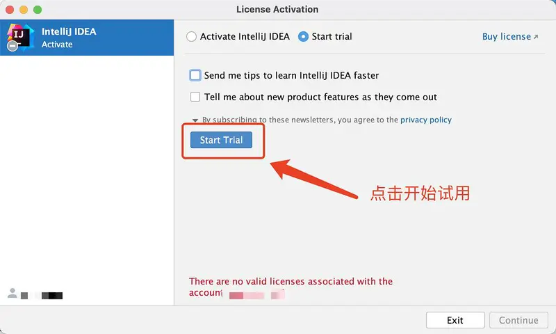 我们直接点击 开始试用即可,上面的两个选项不用勾选。