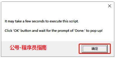 运行此补丁大约花费几秒钟,点击 确定,等待 Done 完成提示框出现,到这里,表示补丁安装成功。