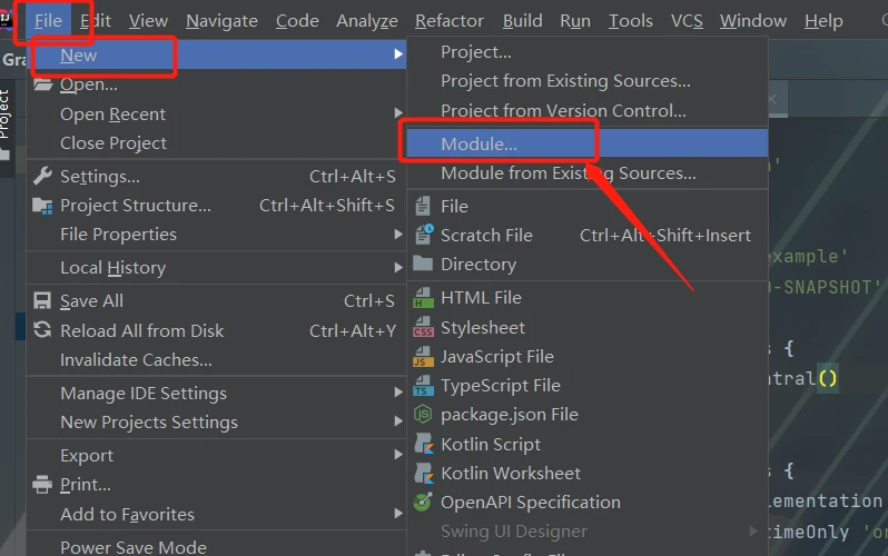 6、紧接着,我们点击左上角的 File --> New --> Module...