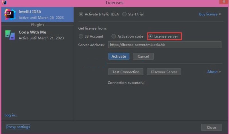 1、选择License Server,添加代理服务器地址,更多License server地址:jetbrains-license-servers