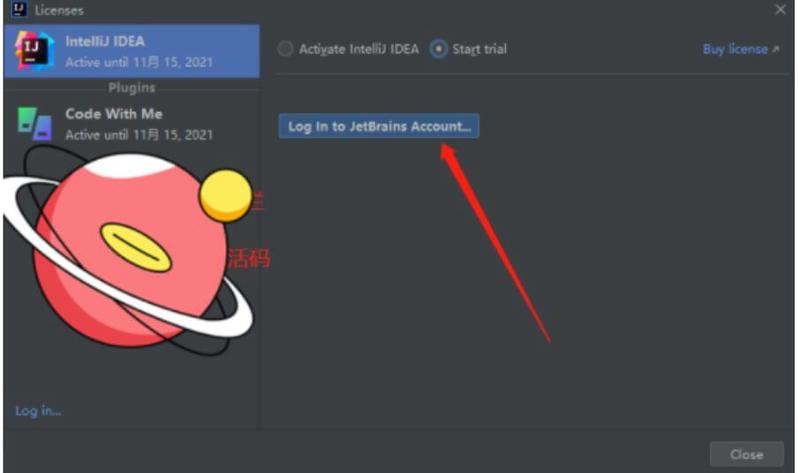 首选我们需要注册一个JetBrains账号,按照下图所示,选择Start trial点击 Log In to JetBrains Account