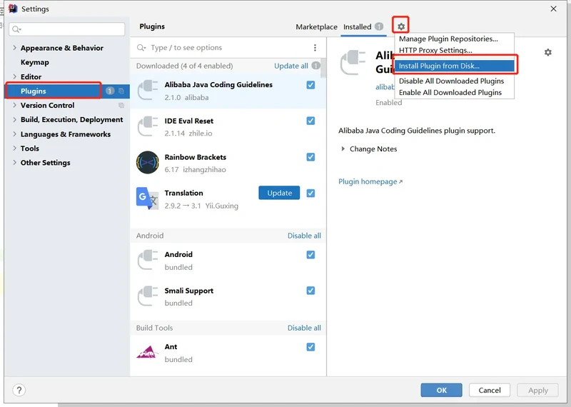 通常可以直接把插件zip包拖进IDE的窗口来进行插件的安装。