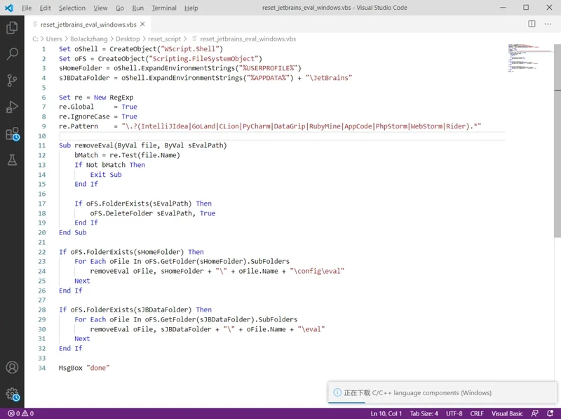 这里为大家提供了重置脚本,其原理是删除jetbrains全系列产品软件试用相关目录(其他配置不受影响)。