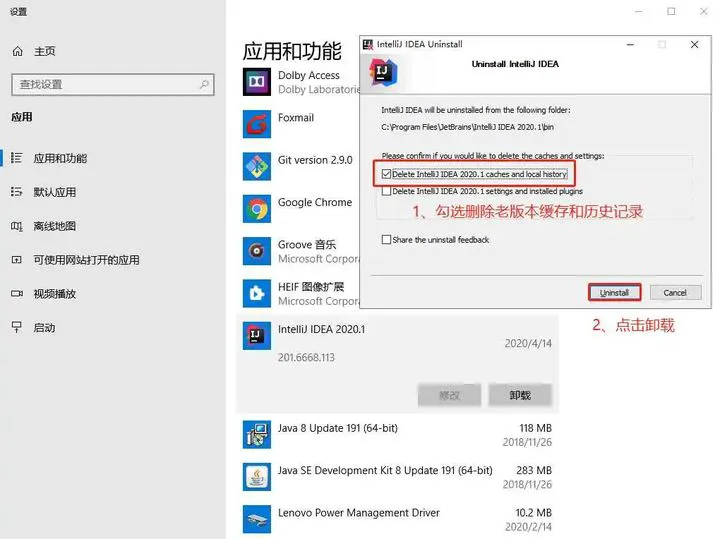 注意,如果电脑上之前有安装老版本的 IDEA, 需要先卸载干净,否则可能安装失败! 注意,一定要先卸载干净掉老版本的 IDEA。