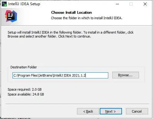 2.安装目录默认为 C:Program FilesJetBrainsIntelliJ IDEA 2021.1.2, 这里笔者选择的是默认路径: