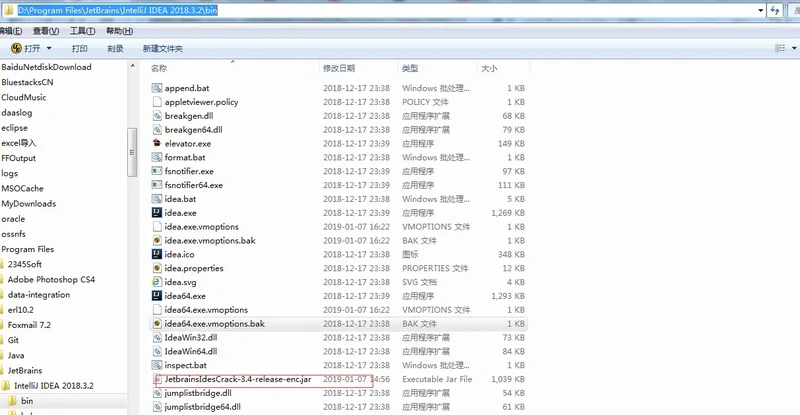 下载最新激活成功教程jar包,放入到安装包目录内(其实位置可随便,放置到目录下方便后面管理)。本人放置到D:Program FilesJetBrainsIntelliJ IDEA 2018.3.2bin目录下。
