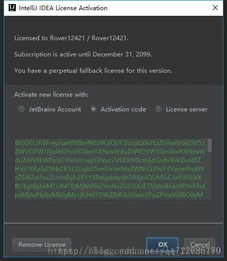 3)打开IDEA,激活弹出框中选择第二个:把下面的激活成功教程码复制上去: