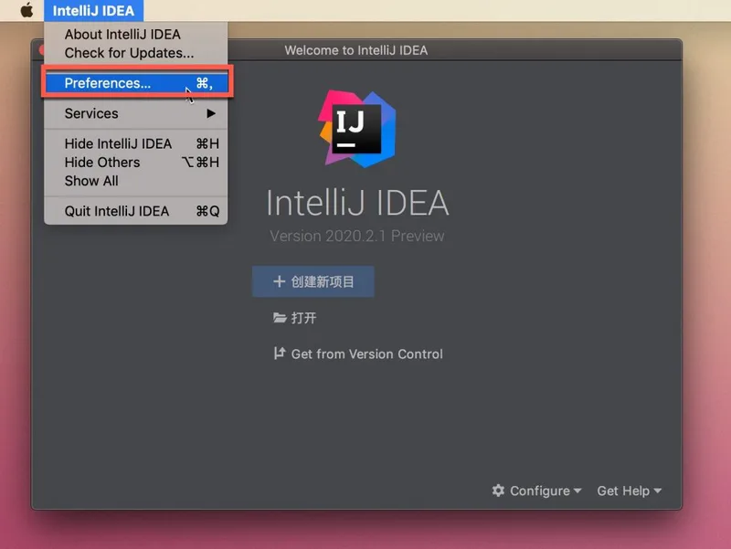 点击菜单栏的,再点击打开软件的偏好设置