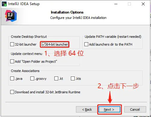3.勾选自己想要创建的桌面快捷方式,笔者的操作系统是 64 位的,所以勾选的 64 位快捷方式: