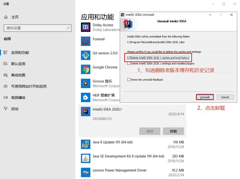 1.笔者之前安装了老版本的 IDEA, 所以要先卸载,未安装老版本 IDEA 的小伙伴直接跳过,看后面步骤就行: