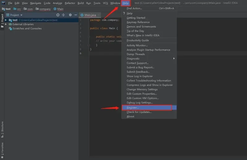 激活成功教程补丁配置完成以后,开始填入激活码,点击菜单栏 Help -> Register: