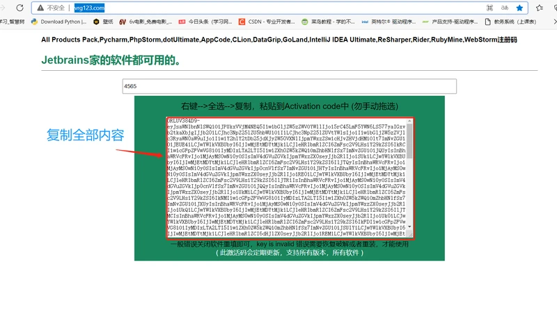 7.然后先打开网址 vrg123.com 将里面的内容全部复制