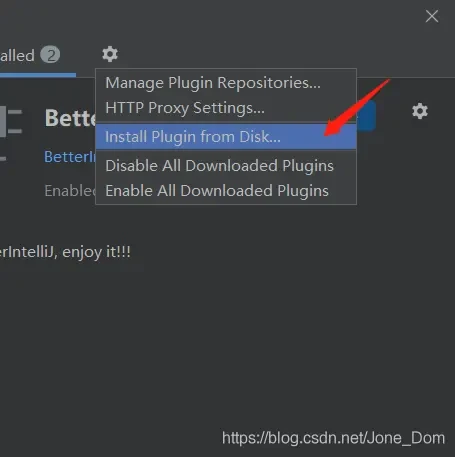 (3)选择:Plugins->设置->Install Plugin From Disk