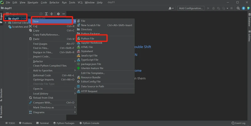 方式如下:点菜单栏project下面的第一个文件夹-鼠标右键-new-python File-命名后回车即可.