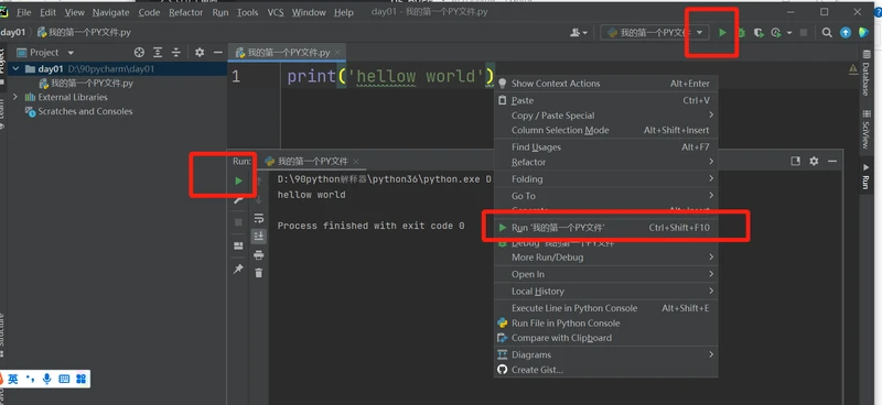 方式如下:编辑好代码内容后,在文件内容区域内鼠标右键选择 run...py即可运行。
