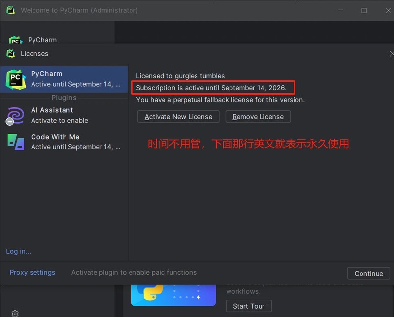 4.2 激活成功后,不要升级 Pycharm 版本
