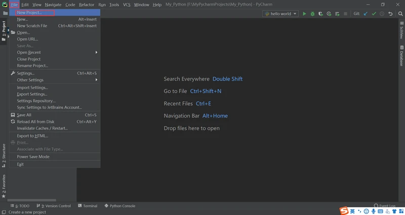 若之前打开过pycharm,可以选择File→New Project,打开创建项目的页面