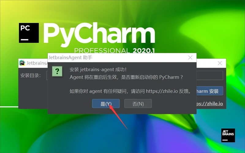 5. 将 jetbrains-agent-latest.zip拖进下面窗口,点 "Restart" 按钮,重启pycharm