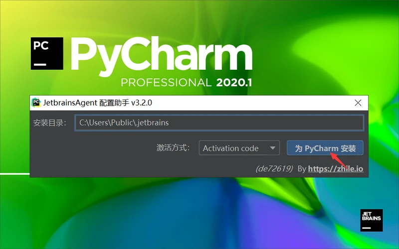6. 在弹出的 JetbrainsAgent Helper 对话框中,选择激活方式,点击安装按钮,网络不好,建议勾选我无法访问外网