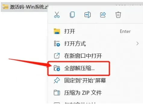 第二步:解压“激活码-Win系统.zip”,一定要先解压!