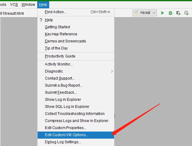 3.在菜单栏Help中选择Edit Custom VM Options …