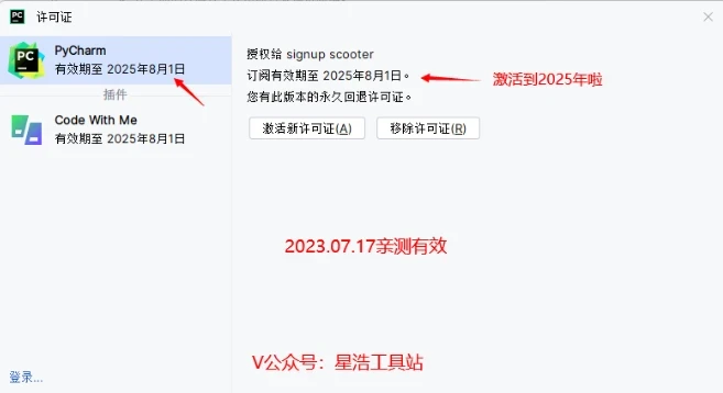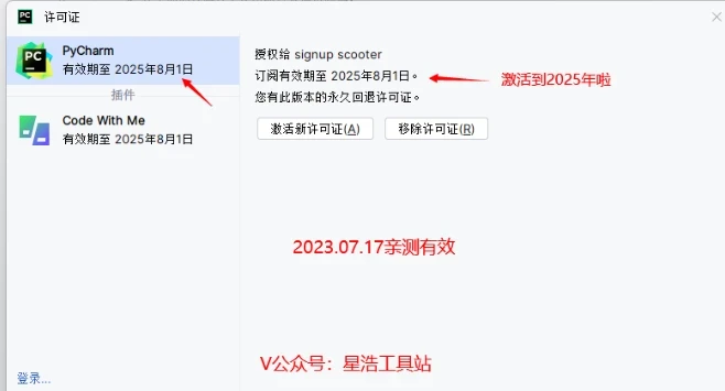需要的小伙伴,扫描下方公众号二维码,或者关注公众号: 星浩工具站,回复关键字:pycharm, 即可免费无套路获取激活码、激活成功教程补丁,持续更新中~。