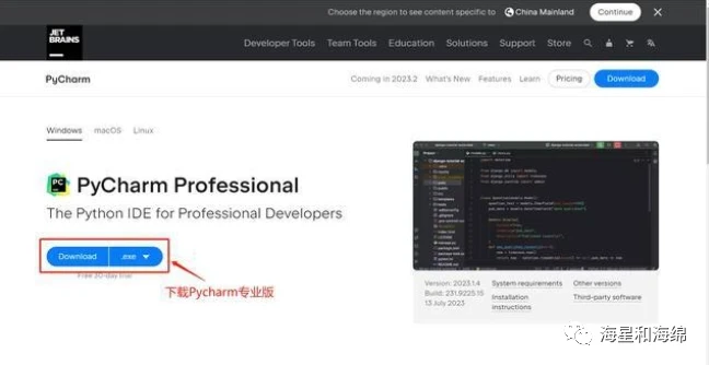 点击 按钮,下载 Pycharm 最新版本的安装包