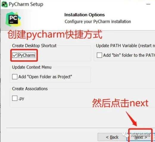 然后,勾选 创建 Pycharm 桌面快捷启动方式,以方便后面快速打开 Pycharm,再点击 按钮 :